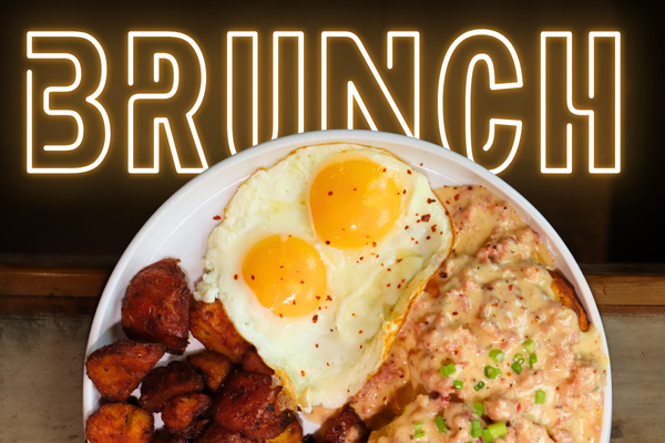 gemelli pasta | cheddar and smoked gouda mornay | crumb baked | crispy shallot | choice of: braised brisket, BBQ chicken, or buffalo chicken